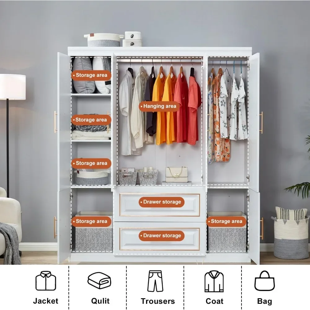 - ⭐️ 【Sturdy and Durable Construction】 – Crafted primarily from robust MDF board, this wooden wardrobe closet is built to withstand the test of time. The freestanding design of the armoire closet cabinet, coupled with its elevated base, ensures remarkable stability. Additionally, the polished and wear-resistant surface of the wooden closet wardrobe simplifies maintenance and cleaning
