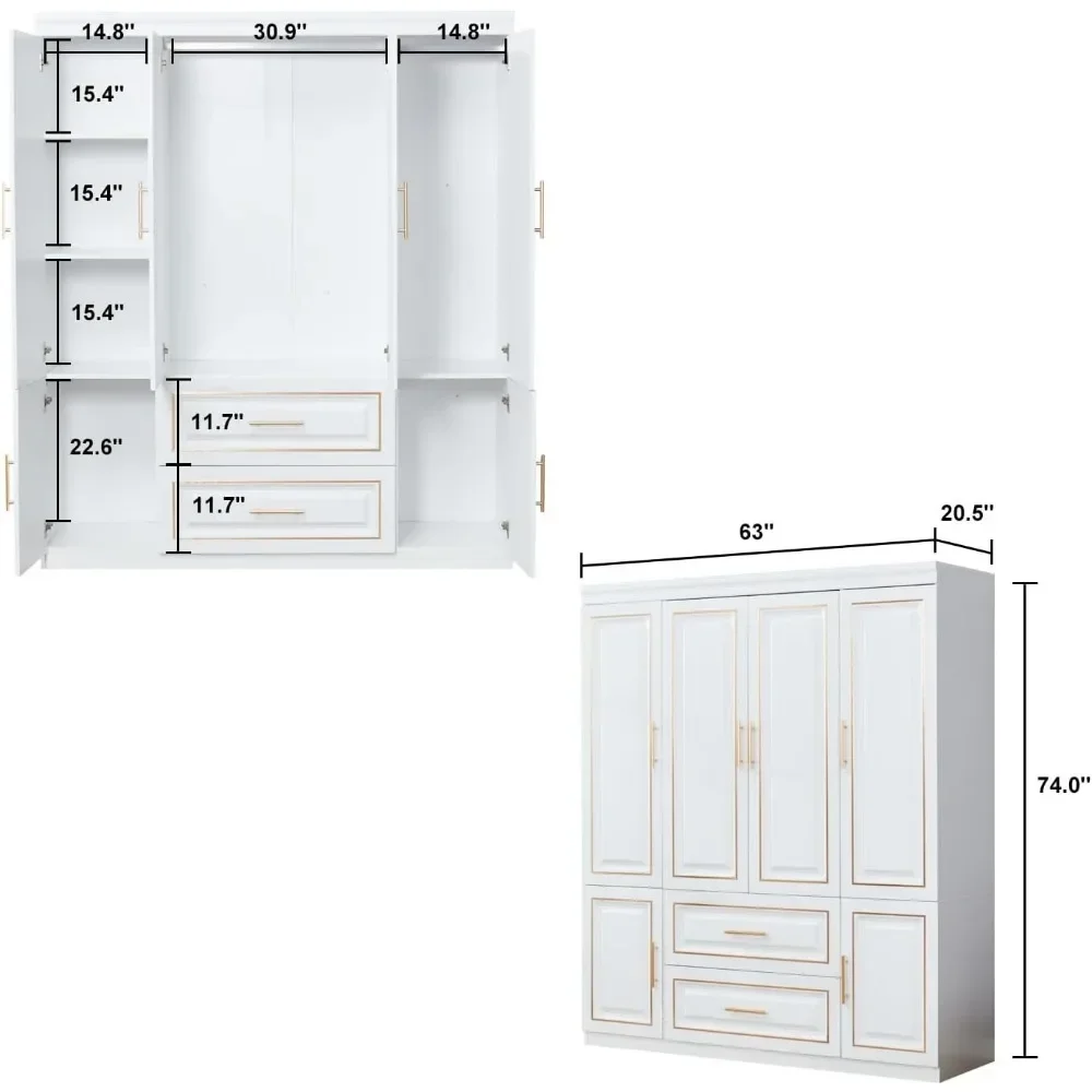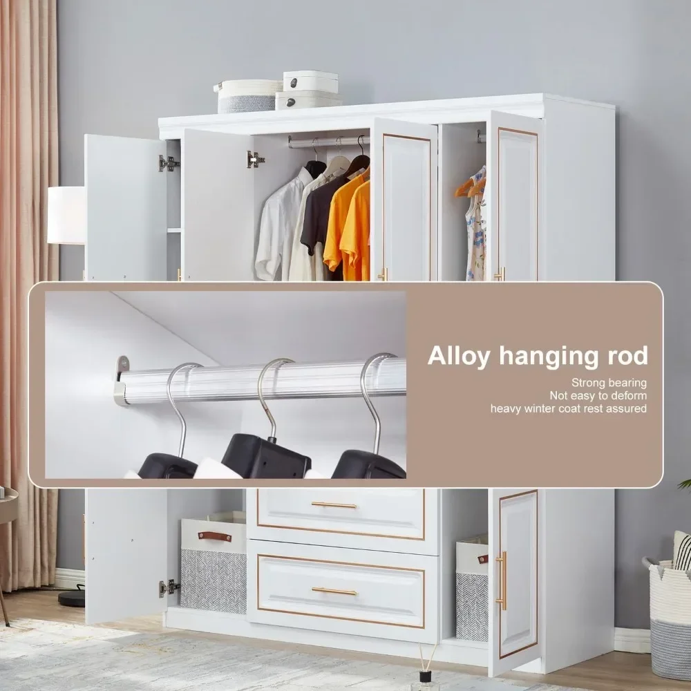 - 【Efficient Storage Solutions】 – Experience optimized storage with our wardrobe closet that offers a variety of well-thought-out options. The armoire storage cabinet features a practical hanging rod and convenient side shelves, ensuring efficient organization for all your clothing and household items. The overall dimensions of the wardrobe closet are 63″(W) x 20.3″(D) x 78.7″(H)