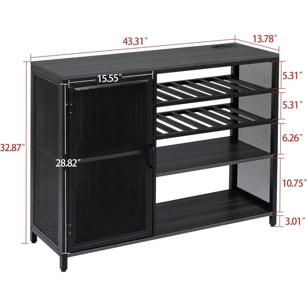 - Open shelves can be used to display home furnishings, electrical appliances, can also be provided with a wine rack horizontal neat storage up to 14 bottles of wine, the roof area is also equipped with sockets, USB and three-hole jack.