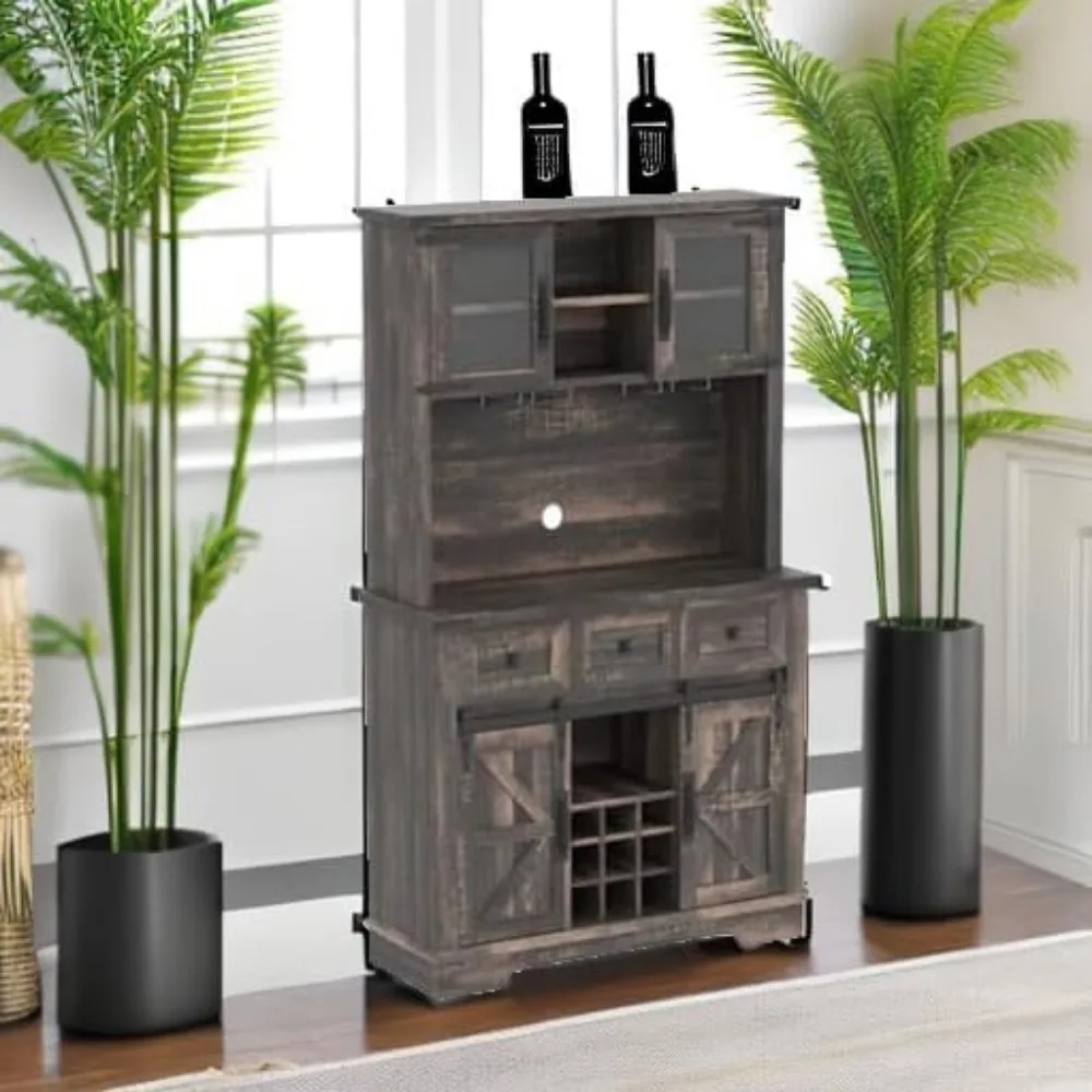 About this item Farmhouse Home Bar Furniture with Sliding Barn Door: Rustic wine cabinet features two flexible sliding barn doors allow easy access to cabinets and space saving. The sliding door with farmhouse sign create an elegant, farmhouse ambiance in your living space. Flexibly use it as a alcohol cabinet, kitchen pantry, china cabinet, coffee…