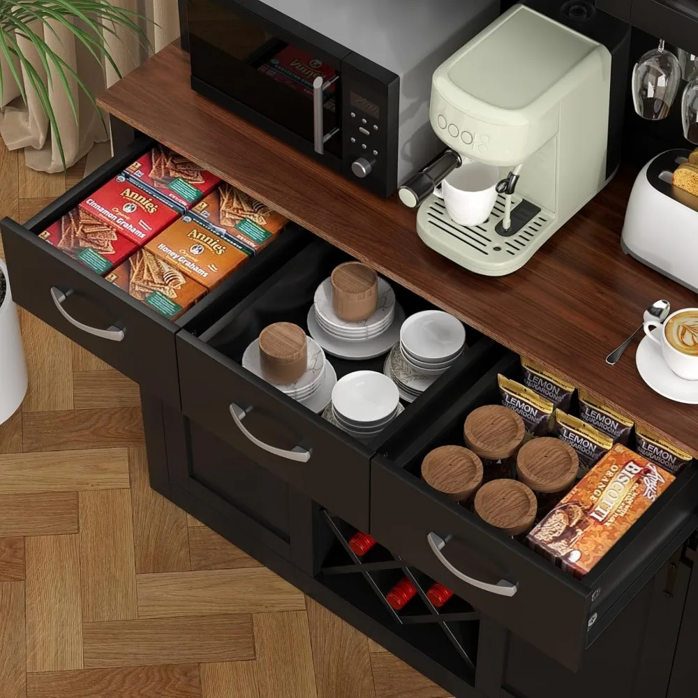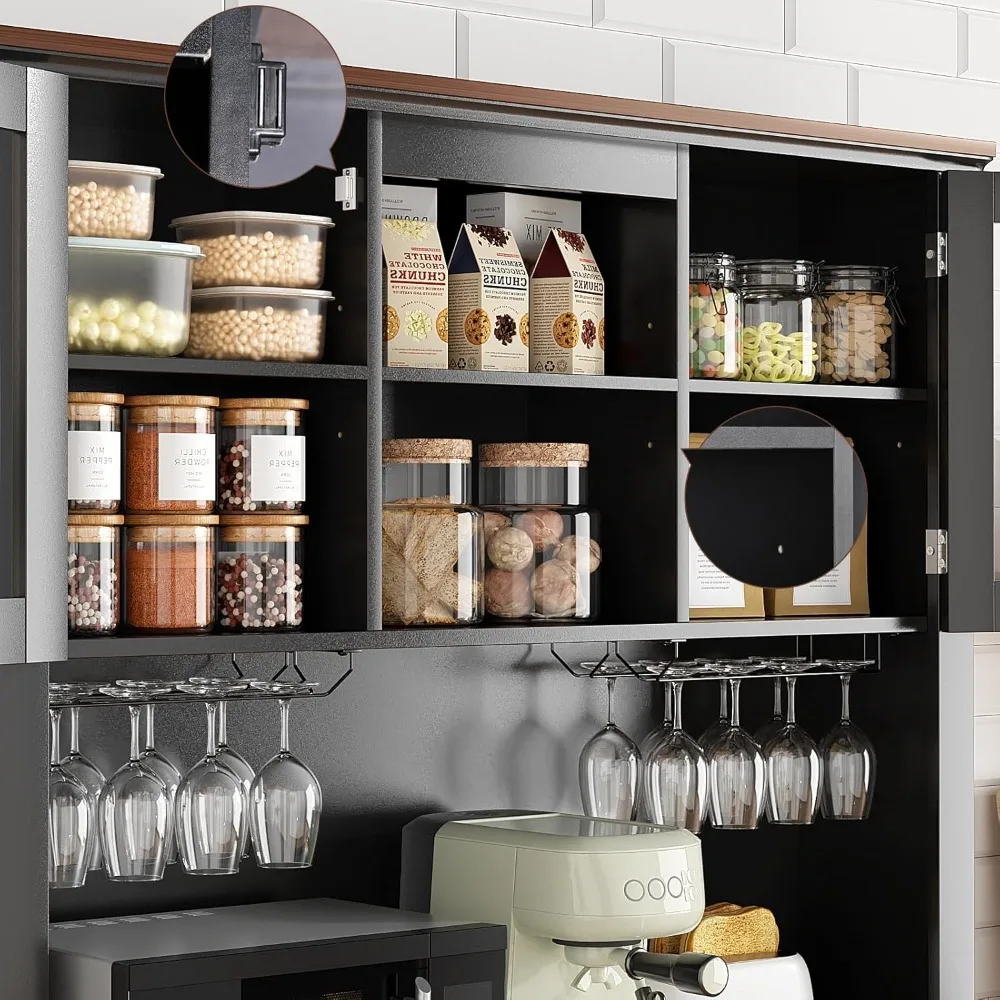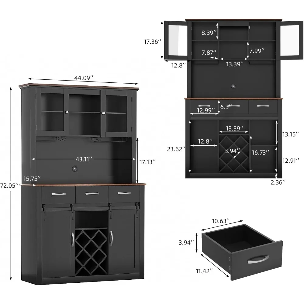 - 【MULTIFUNCTIONAL CABINET】This coffee bar cabinet size: 44.09″W x 15.75″D x 72.05″H. This cabinet is not only suitable for storing and displaying your wine collection, but also can be used as a kitchen pantry storage cabinet or buffet cabinet. Its multifunctional design makes it a great addition to any room in your home.