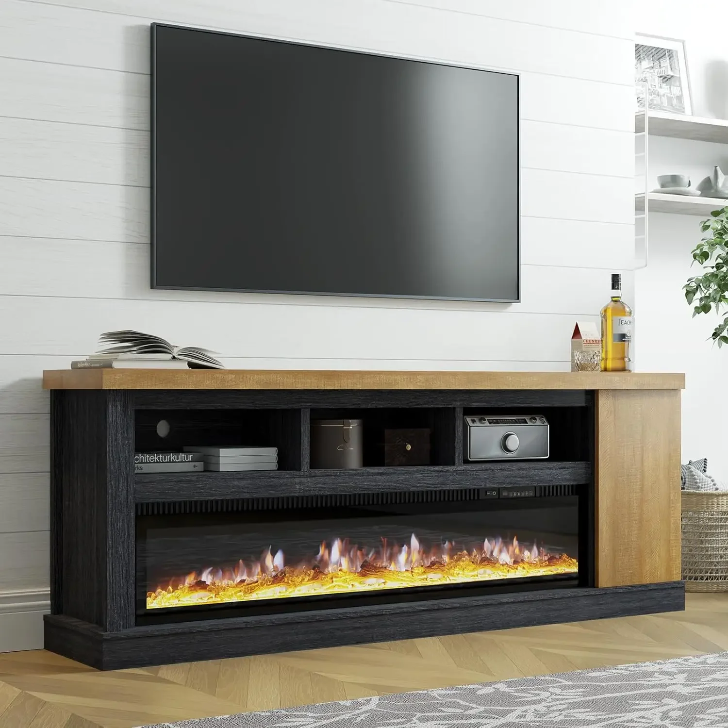 - Contrasting Colors: Unique blend of rich colors and intricate wood grain enhances visual appeal. This tv console with fireplace creating a distinctive atmosphere that captivates with richness.