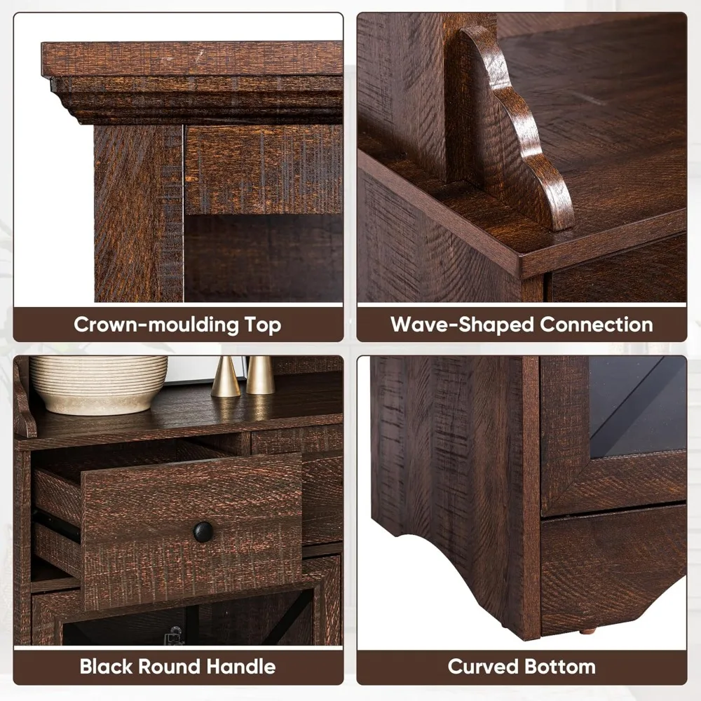 • MULTI-PURPOSE: Our hutch storage cabient has a realistic Log Texture and ambient light. This adding farmhouse elegance to your room. Whether you need a tall kitchen pantry, a chic coffee bar cabinet for your dining room, or study bookshelf for the living room, this farmhouse buffet cabinet meets your needs.