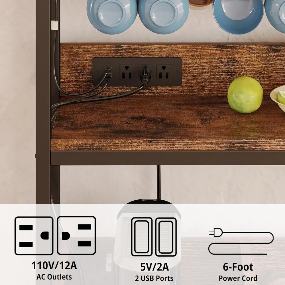 - Convenient Charging: One of the standout features of this cabinet is the inclusion of a power outlet. With 3 AC plugs and 2 USB ports conveniently located, you can effortlessly charge your coffee maker