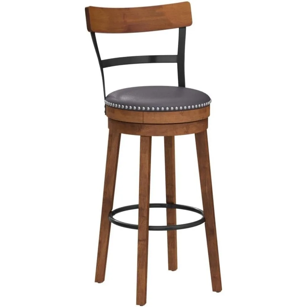 - RUSTIC AND ELEGANT APPEARANCE——Characterized by its classic color, clean lines and antiquated nail-head trim, this swivel bar stool is full of rustic appeal. With its elegant look, this exquisite bar stool is not only suitable for bistro and coffee house, but also suitable for restaurant and your kitchen.