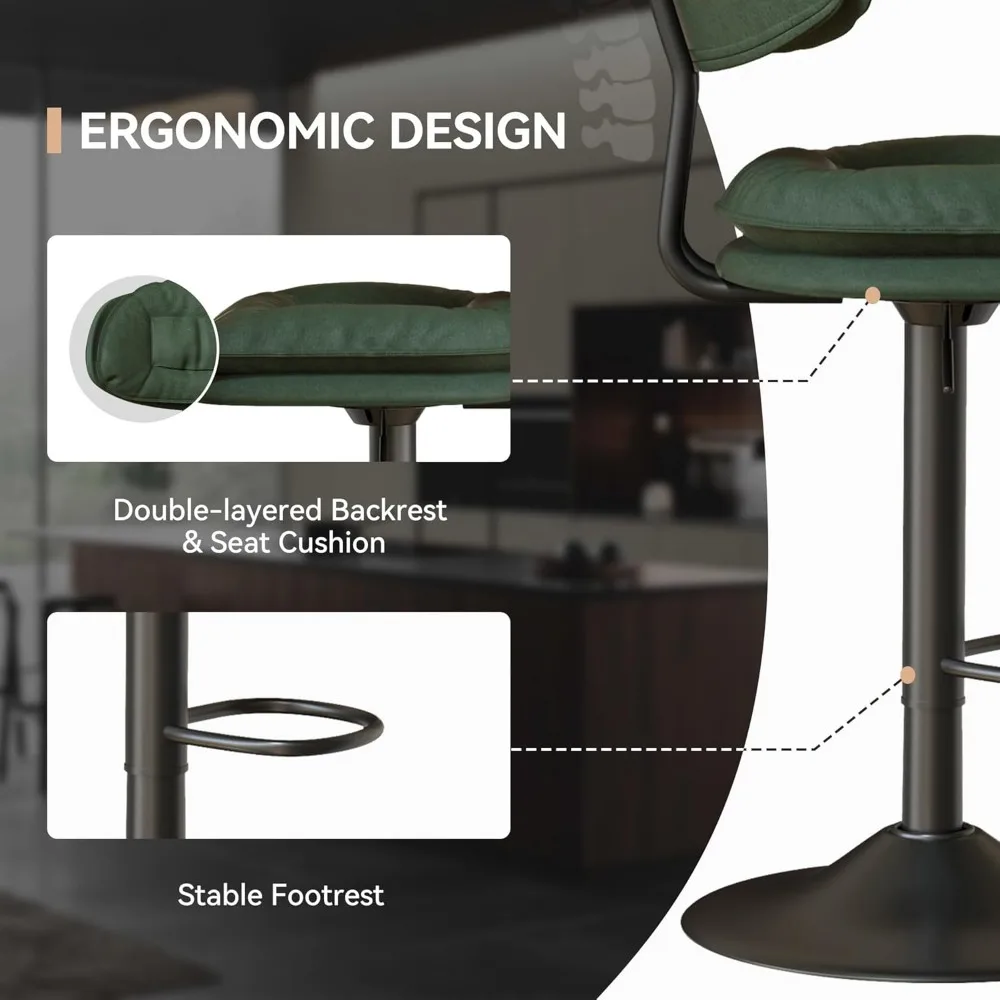 Bar Stools Set of 2,Modern Adjustable Swivel Counter Height Barstools for Kitchen Island,Double-Layer Upholstered Bar Chairs