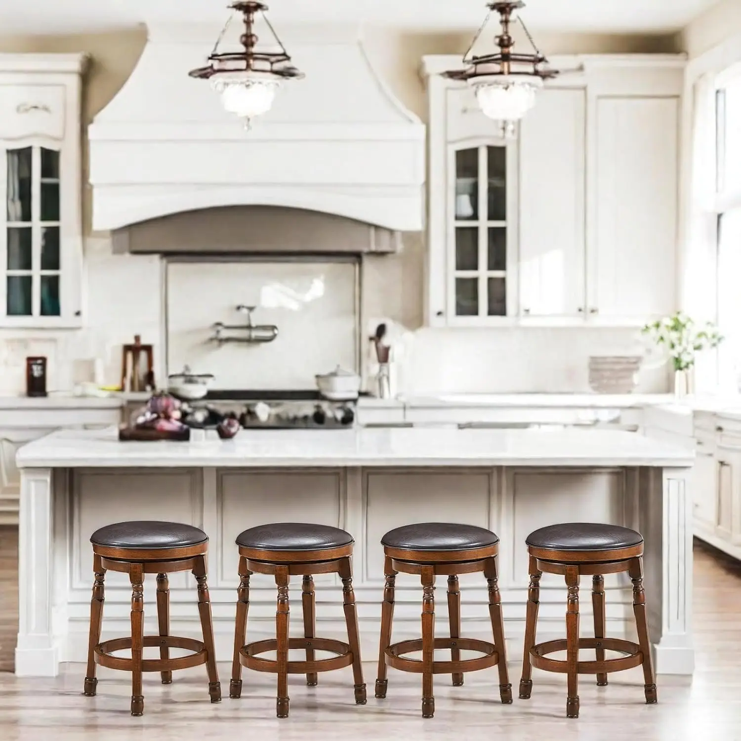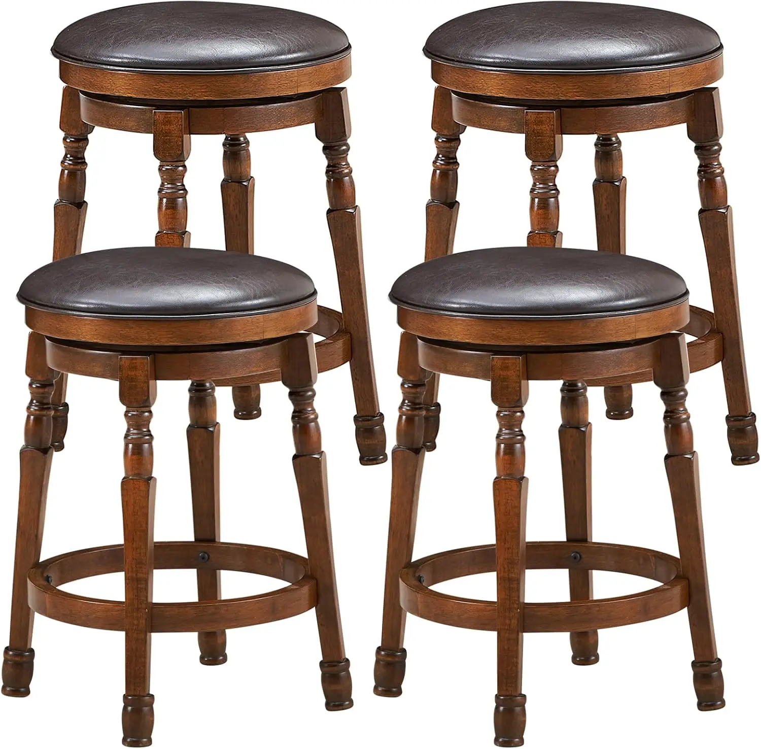 - 【Classic design】Retro walnut color and exquisite engraving legs give the bar stools a simple elegant as well as classic style, which fits in with both contemporary and traditional decor. 24-inch seat height is ideal for counter-height (36″-39″) surfaces such as kitchen islands, work tables, home bars, and more.