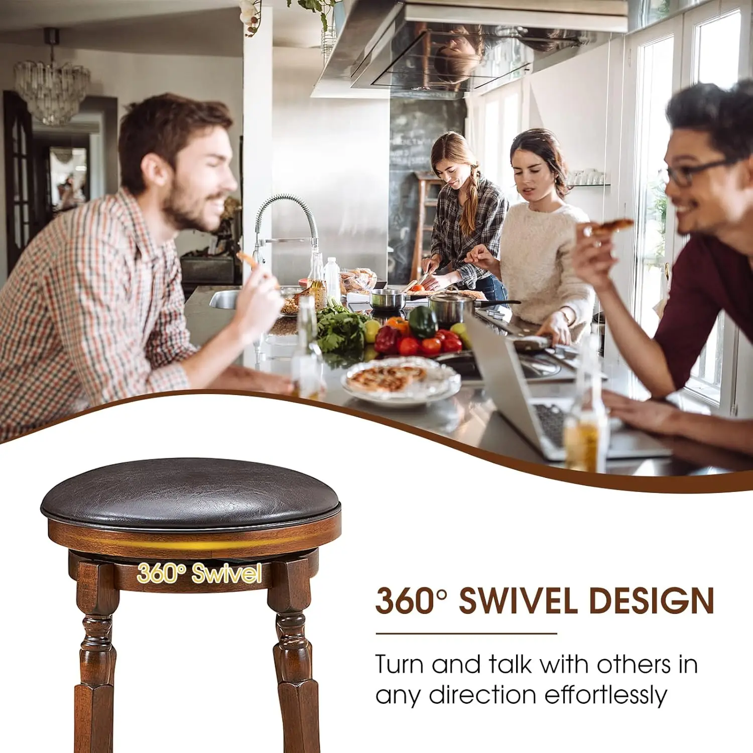 - 【360° Swivel Seat】The backless bar stools are delicately equipped with a 360° swivel seat, ensuring quiet, effortless rotation in either direction and alleviate potential fatigue caused by sitting for a long time, Which stands out from other normal stools.