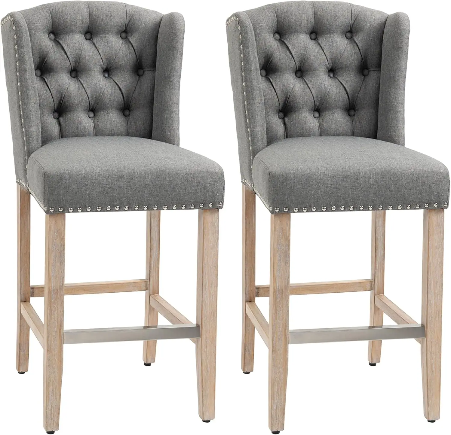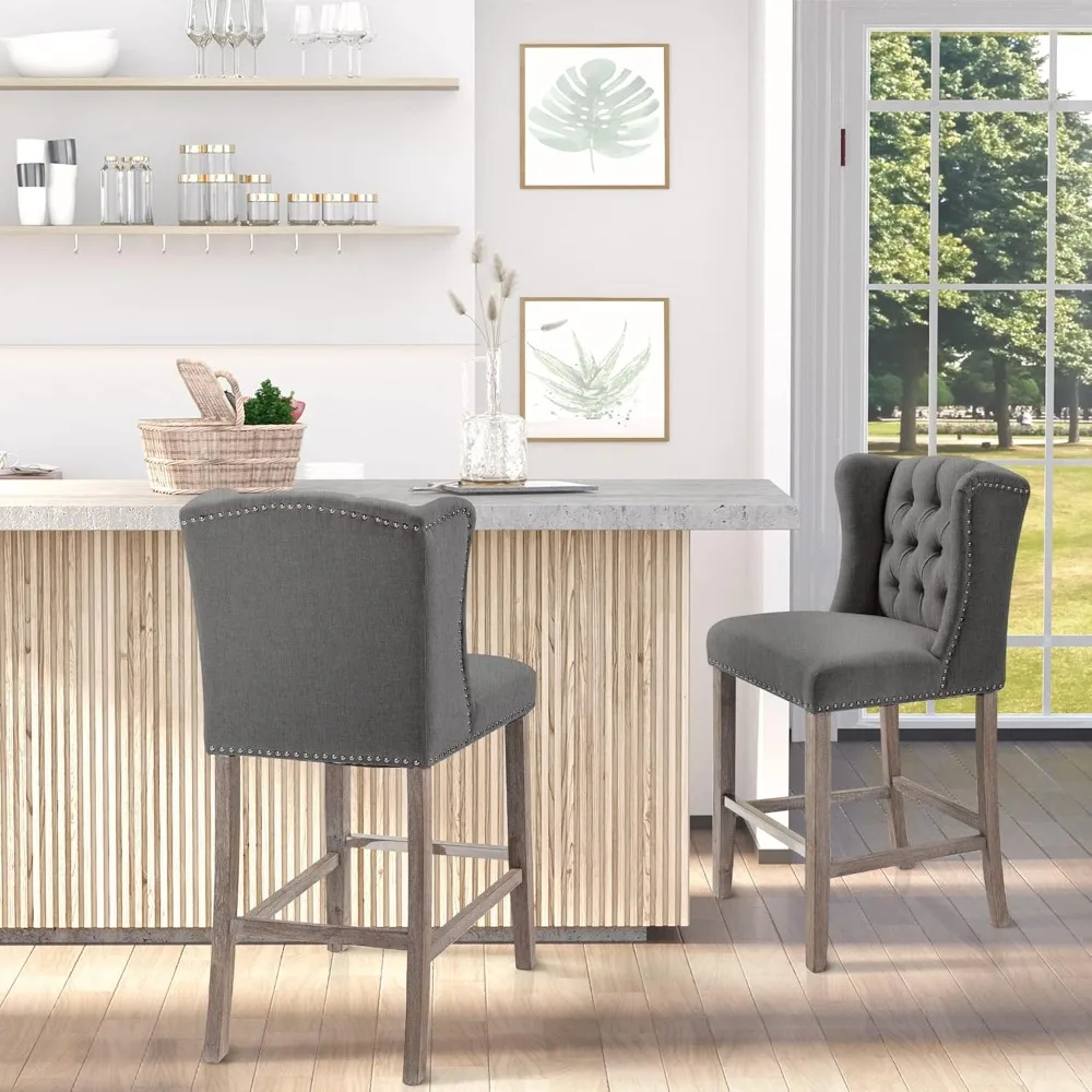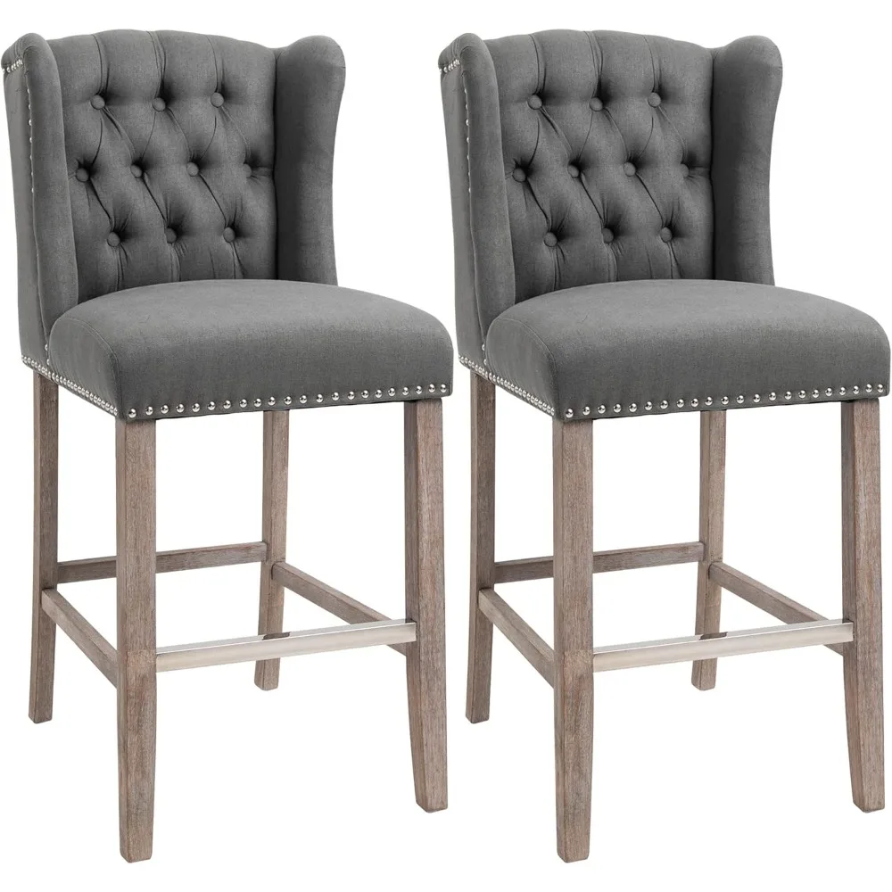 Set of 2 Bar Chairs: Drift away from the prepping zone, and create your own breakfast bar with this farmhouse bar stools. These kitchen counter stools feature nailhead-trim, button-tufted back and distressed wood design for a farmhouse look that complements your home decor.