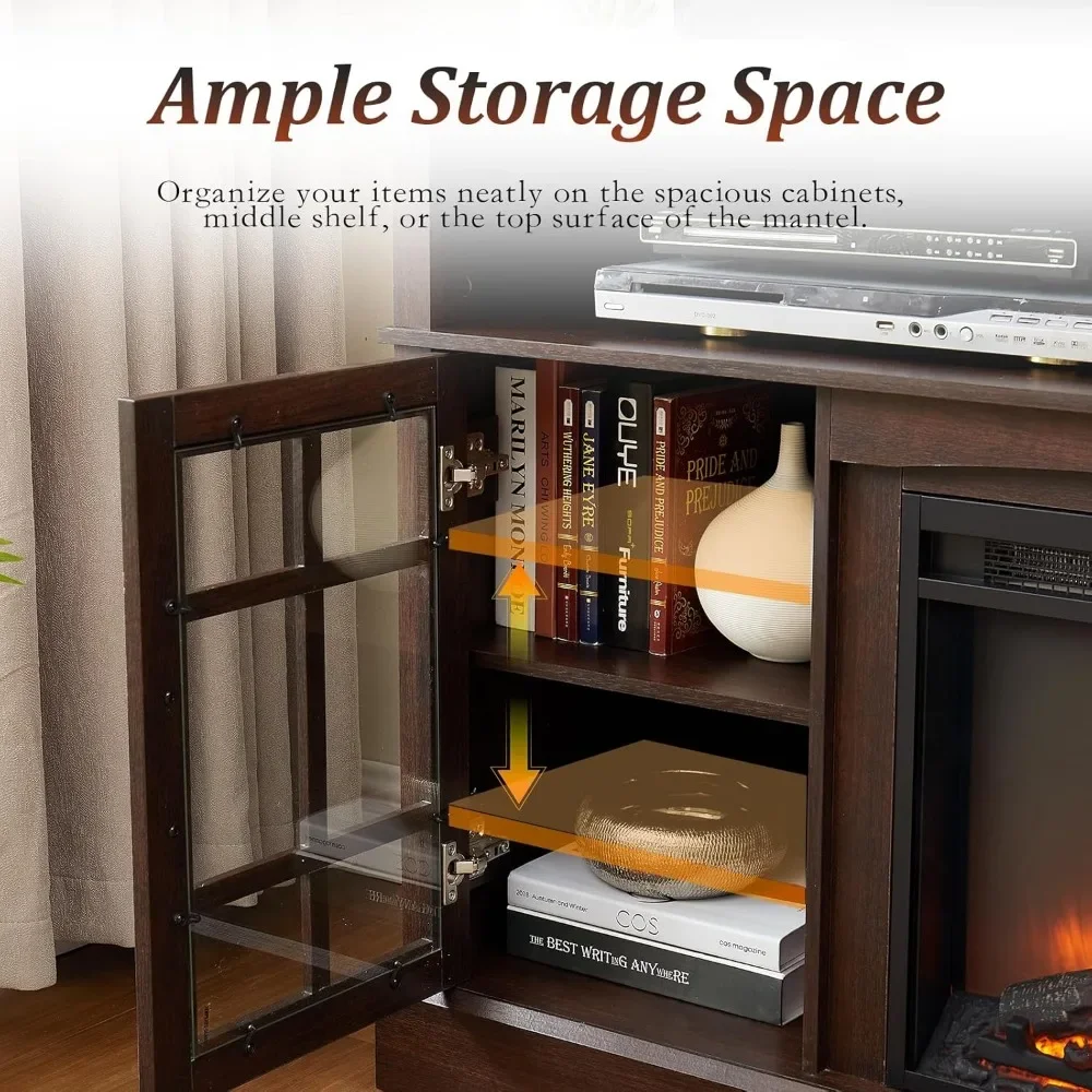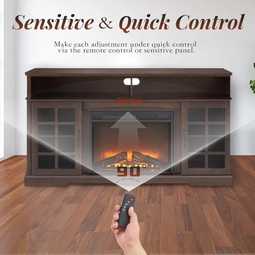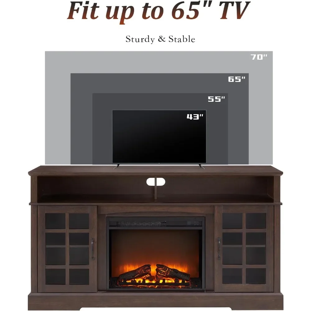 Fireplace TV Stand for Television up to 65″, Entertainment Center with Storage Cabinet and Shelves, Fireplace TV Stands