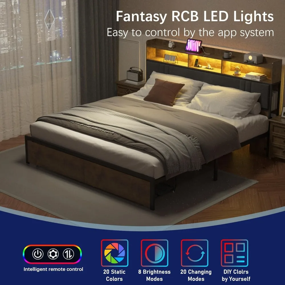 - 【RGB LED AMBIENT LIGHT PLATFORM BED FRAME】:LED Ambient Light Platform Bed Frame can be Controlled by the Equipped Remote Control or Cell Phone APP, Set the color, Brightness, mode, Timing Function, etc., to meet the needs of Different Styles and Scenarios.The LED Ambient Light can be set to the Rhythmic Mode, Which can be Followed by the Melodic Rhythm of the Music According to the Music that you are Playing, So that your home life Will be More Colorful.