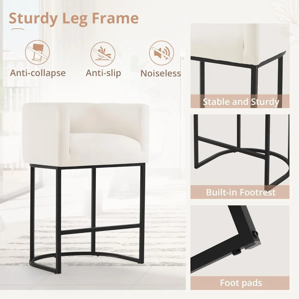 Sink into the plush, linen-colored upholstery that envelops you in a cozy embrace. The ergonomic backrest and armrests provide exceptional support, ensuring hours of comfortable seating. The 27″ height is perfectly calibrated for counter-height tables, allowing you to dine or socialize with ease.