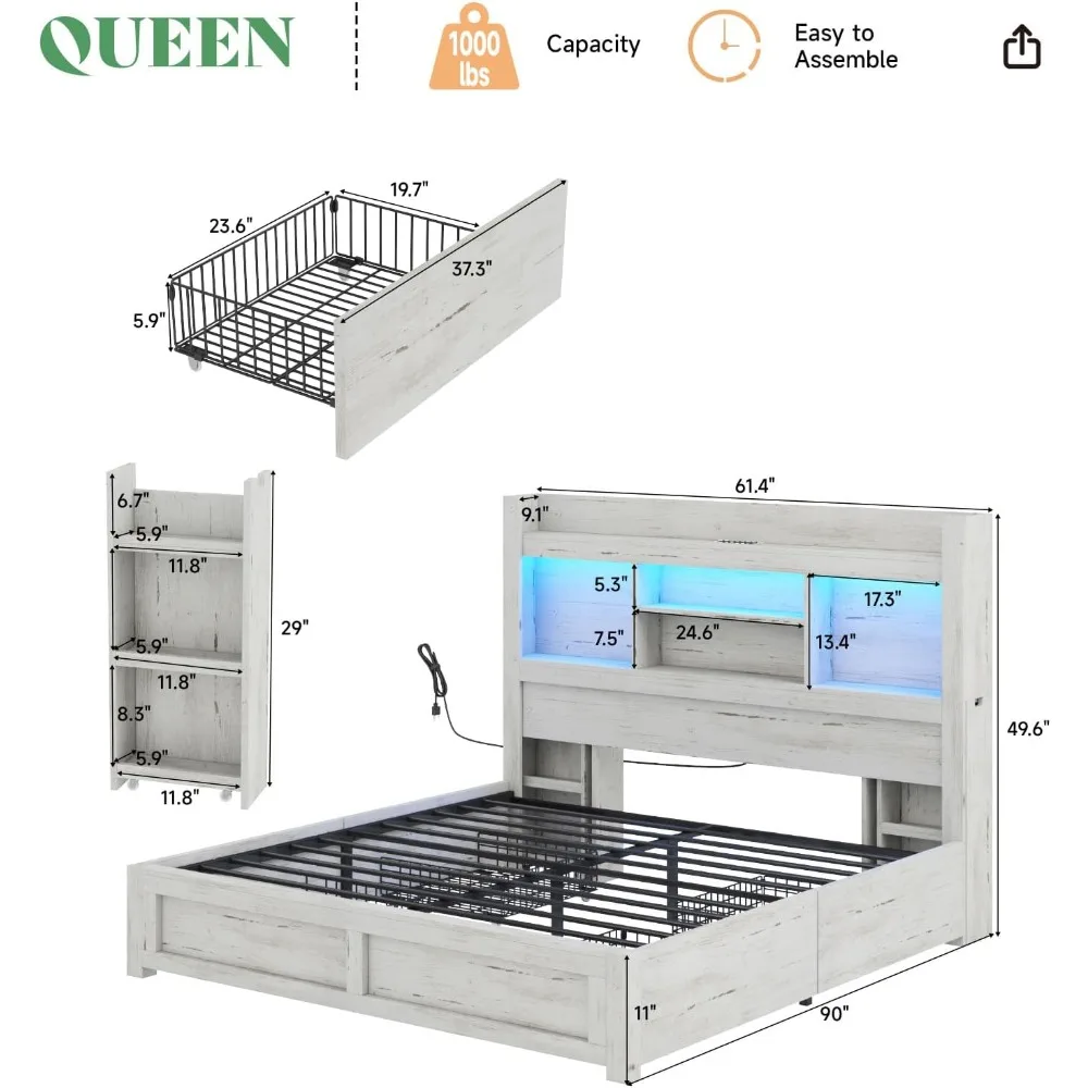 - Unique headboard side drawer: Bedframe features 4 under-bed drawers, bookcase headboard with 4 open storage spaces & 2 slide 3-tier side shelves that can be used as nightstands. This bed with storage can meet your different storage needs.