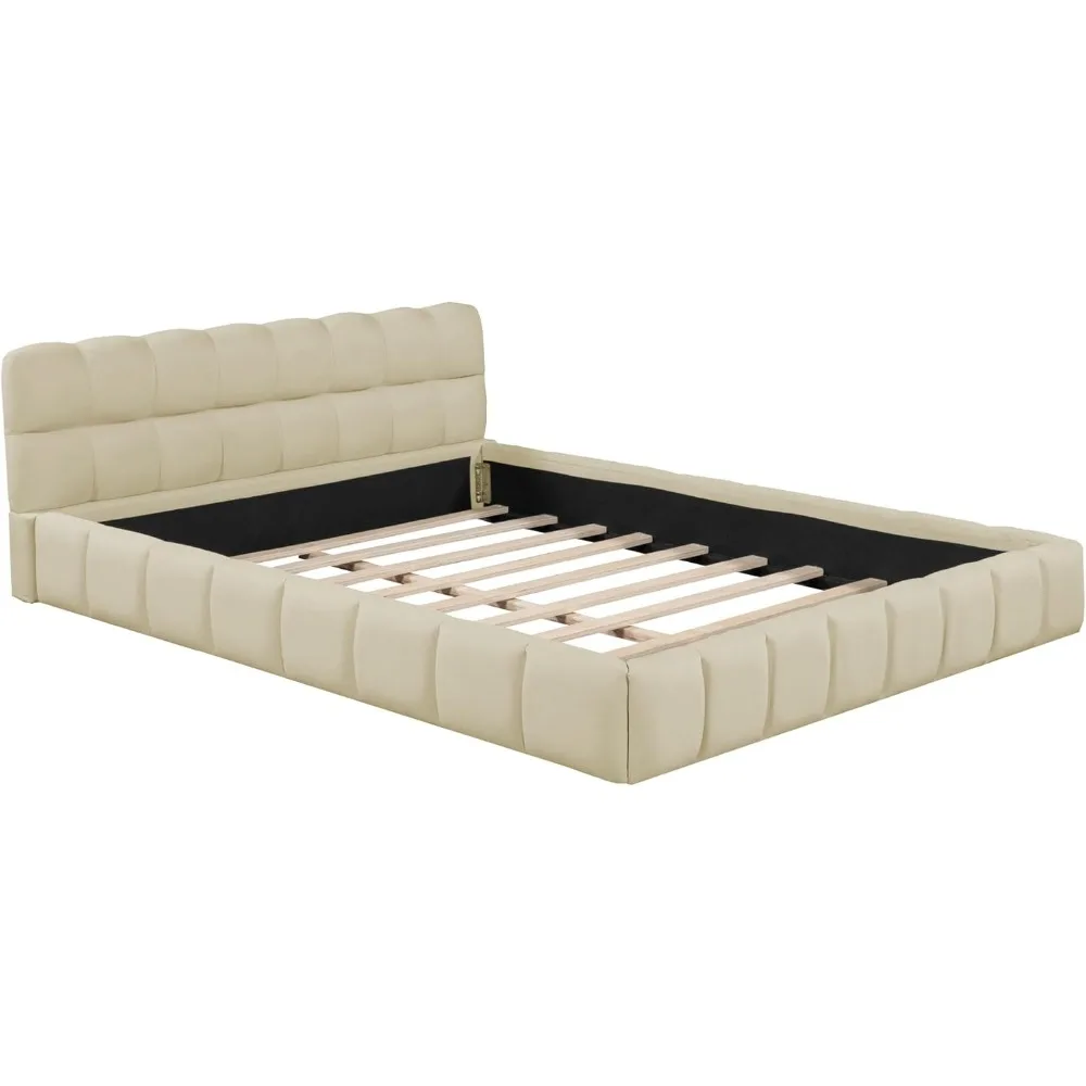 - 🍩[Safety Design] – Experience the reliability and solidity of this grounded platform bed, designed with a sturdy headboard, footboard, and side rails. The fabric upholstery provides added comfort, ensuring a cozy and snug sleep. To enhance stability and safety, a cleverly integrated wooden slat offers a secure and peaceful sleeping experience. Rest assured of the bed’s durability and strength, as its robust construction guarantees unwavering support and complete peace of mind.