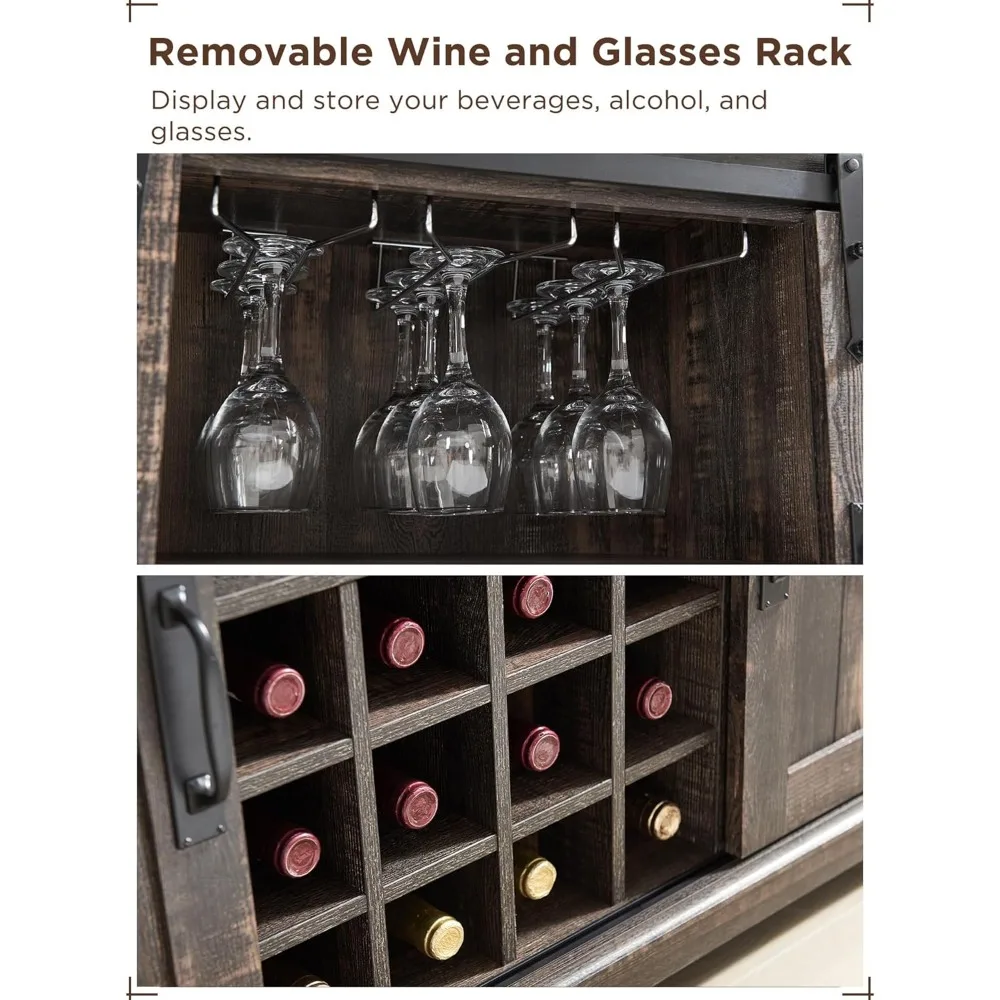 • SLIDING BARN DOORS: Easy access to the home bar cabinet via sliding metal track, designed for smooth and quiet slide. Allows you to hide or reveal this home bar furniture freely. Flexibly divide it into different storage and display area.